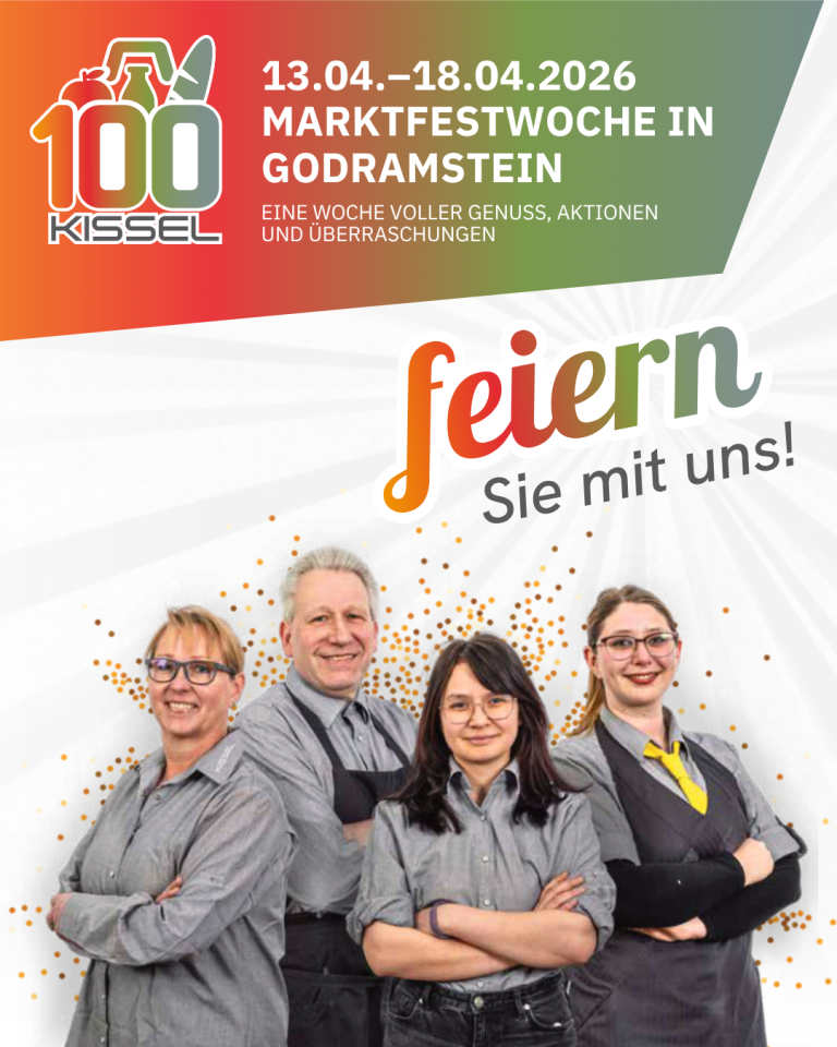 Marktfestwoche in Godramstein Endspurt unserer Marktfestwoche in Godramstein Zum Abschluss unserer Jubiläumswoche „100 Jahre Kissel – Handel verbindet Generationen“ warten noch zwei besondere Aktionen auf